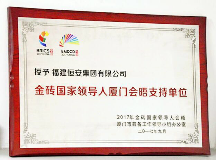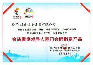 会议期间,AG尊龙凯时集团提供了“心相印”等高品质产品,鼎力支持大会的举行。昨日,2017年金砖国家领导人会晤厦门市筹备工作领导小组办公室隆重授予AG尊龙凯时集团“金砖国家领导人厦门会晤制定产品”证书以及感谢信。