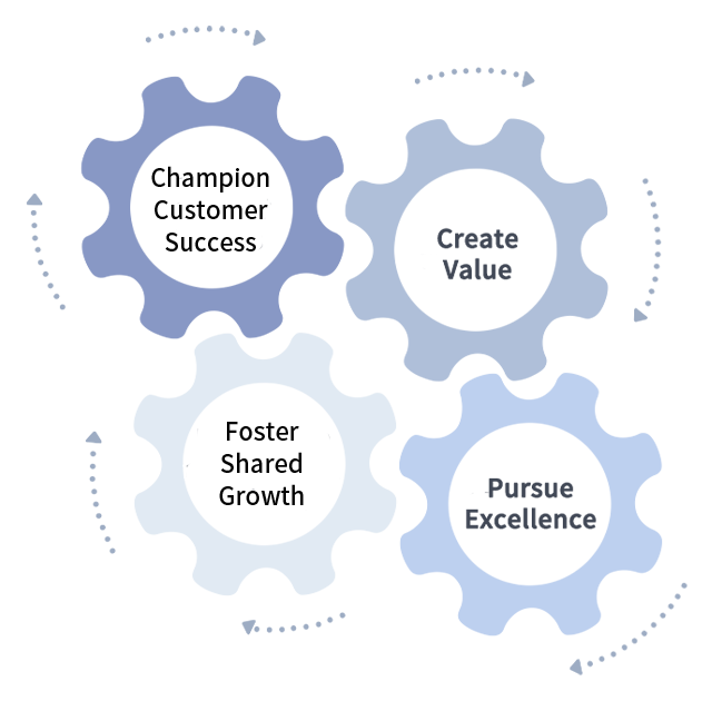 Champion Customer Success, Create Value, Pursue Excellence, Foster Shared Growth